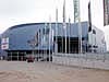 Eingangsbereich der Arena durch prägnante Gestaltungselemente. |