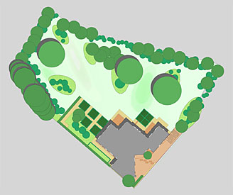 Planungsinhalte: Ziel war es, den Garten um den Neubau sowie