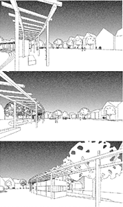 der Bewegung entlang der Pergola entstehen wechsenlde Raumerlebnisse.