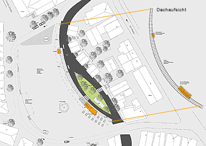 Die vorhandenen Raumkanten des Platzes werden sichtbar gemacht,